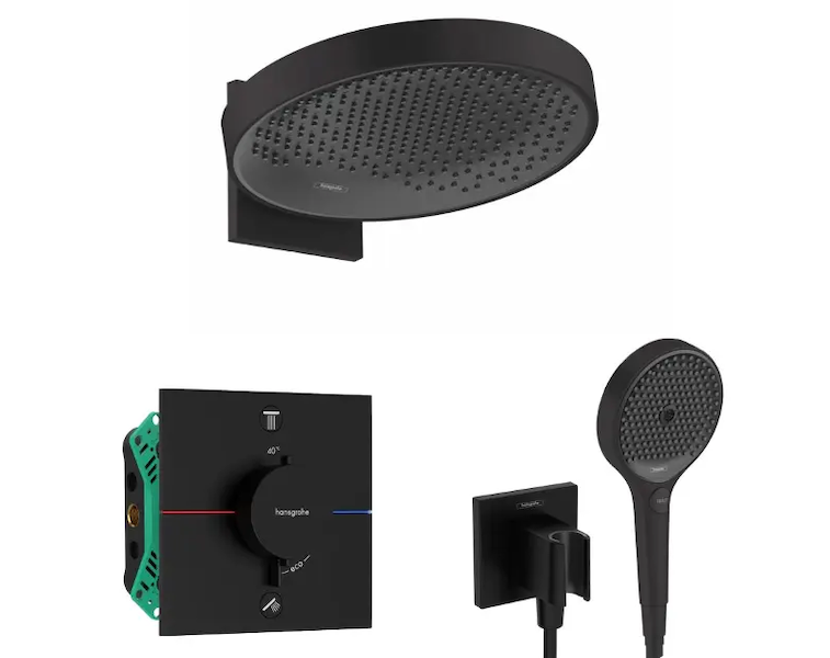 Hansgrohe - Sprchový set s termostatem pod omítku, s tělesem, průměr 36 cm, 3 proudy, matná černá SANI21HHH411