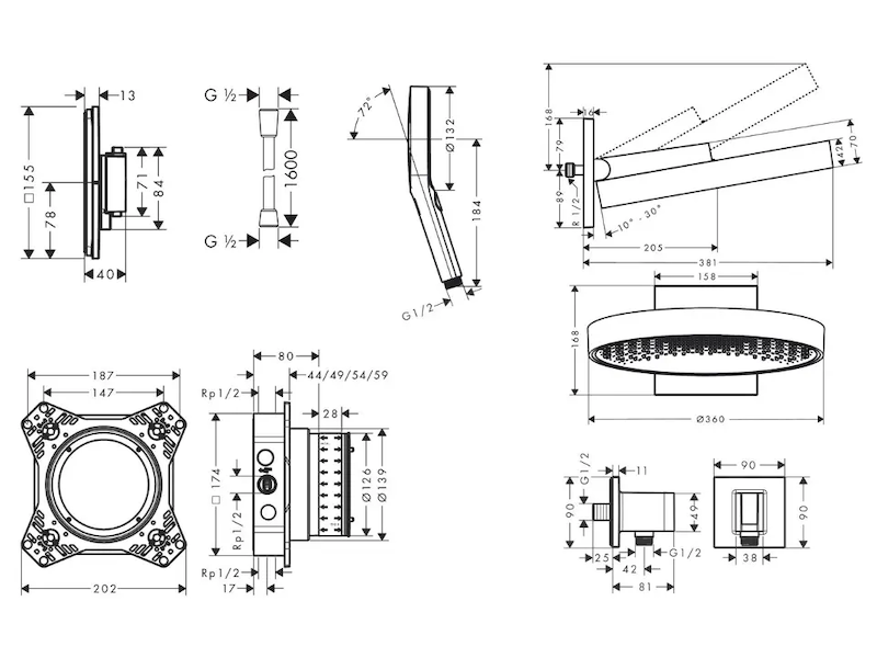 - rameno sprchy vertikálně nastavitelné o 10-30°