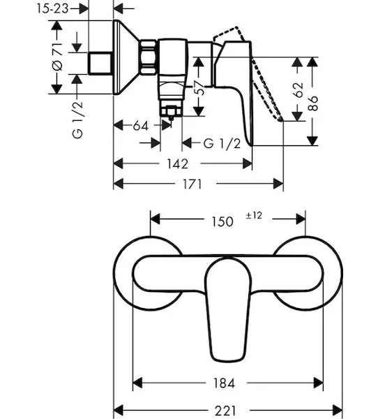 - rozteč středů: 150 mm ± 12 mm