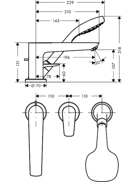 Hansgrohe Talis E - Tříotvorová vanová baterie, chrom 71730000