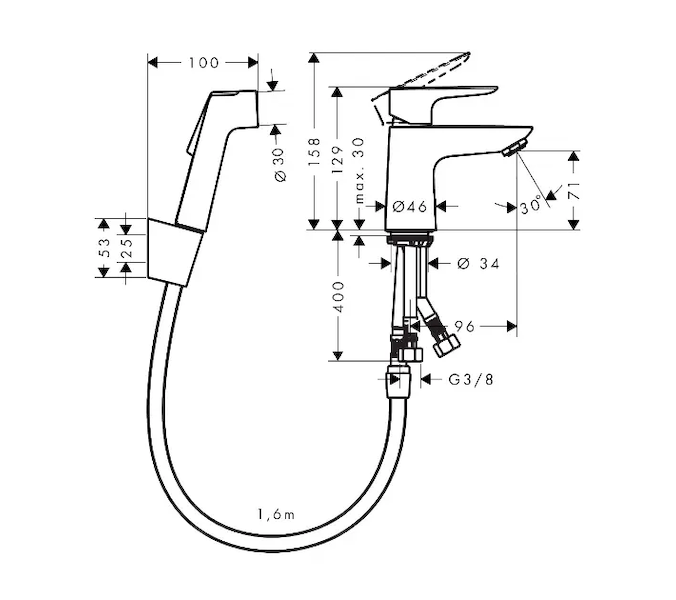 Hansgrohe Talis E - Umyvadlová baterie s ruční sprchou Bidette, chrom 71729000