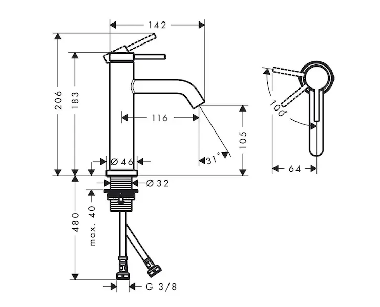 Páková umyvadlová baterie bez výpusti