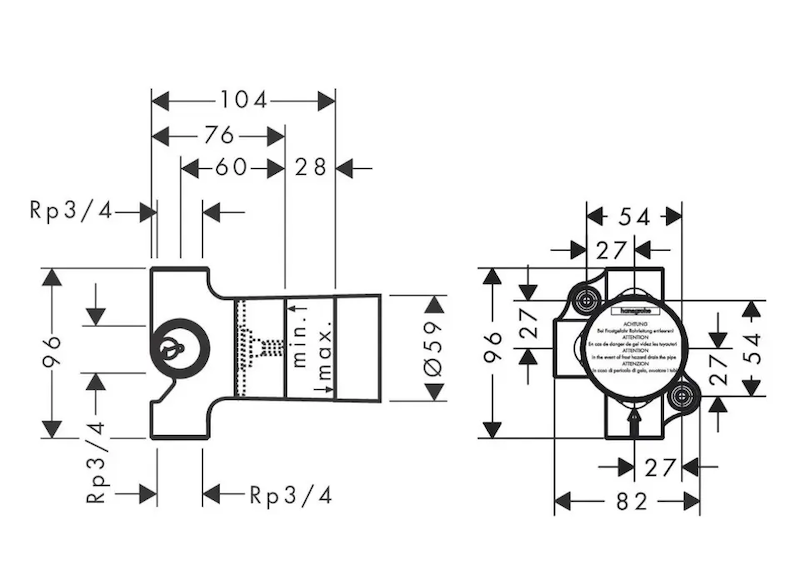 Hansgrohe Trio/Quattro - Základní těleso pro uzavírací a přepínací ventil pod omítku 15981180