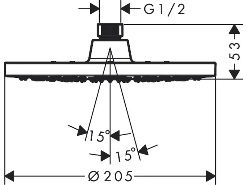 - velikost sprchové hlavice: 205 mm