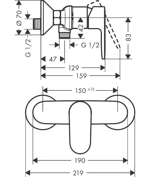 - rozteč středů: 150 mm ± 12 mm