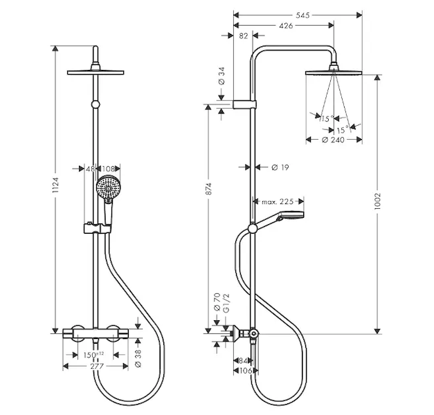 - se sprchovým ramenem 426 mm