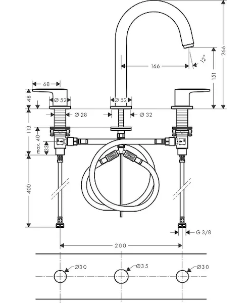 Hansgrohe Vernis Blend - Umyvadlová baterie s výpustí, 3-otvorová instalace, chrom 71553000 Obvykle 1-2 měsíce |
