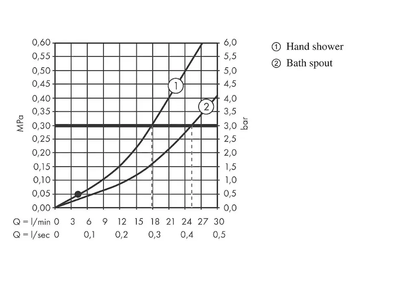 - průtok výtoku vany při 3 barech: 25 l / min