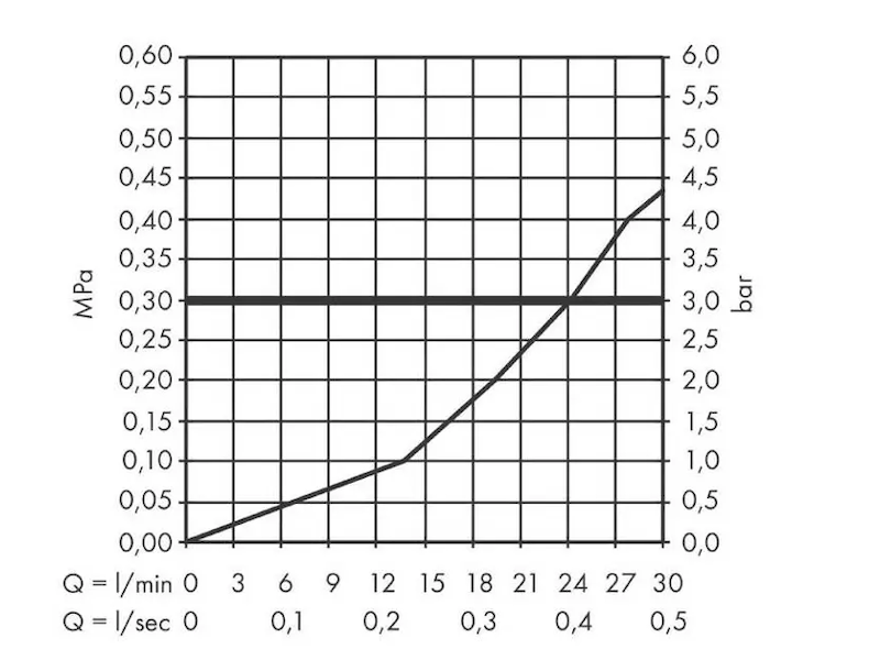 - maximální průtok při 0,3 MPa: 21,7 l/ min