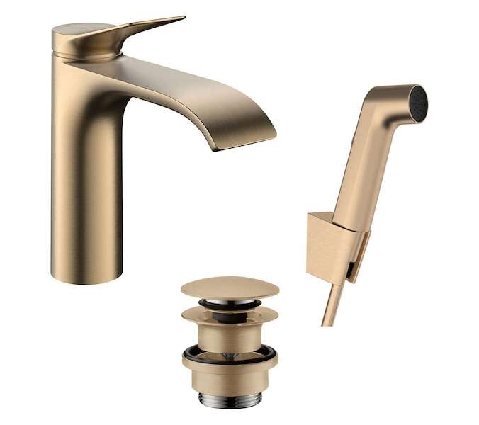 Hansgrohe Vivenis - Umyvadlová baterie s výpustí Push-Open a bidetovou sprškou, EcoSmart, kartáčovaný bronz 75210140