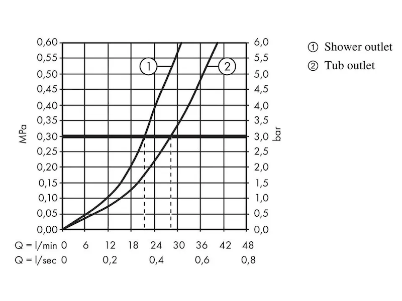 - průtok horní výstup: 21 l/min (tlak 3 bar)