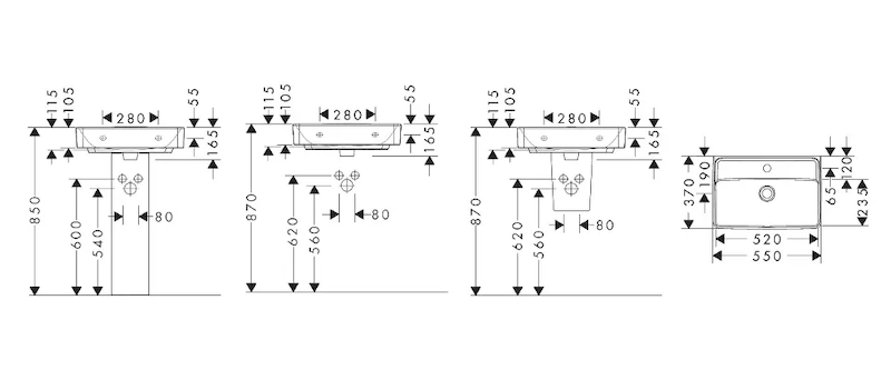 Umyvadlo Compact 550/370 s otvorem pro baterii, bez přepadu