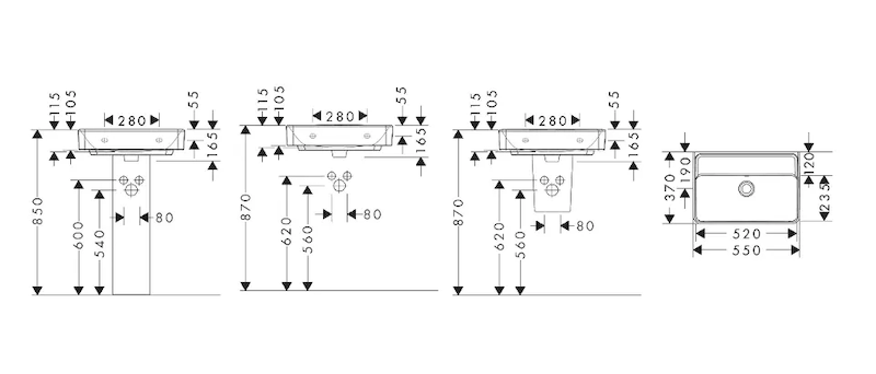 Hansgrohe Xanuia Q - Umyvadlo 55x37 cm, s přepadem, bez otvoru pro baterii, bílá 60210450