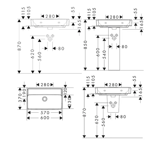 - vnitřní výška umyvadla: 115 mm