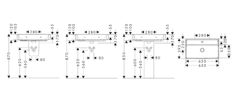 Umyvadlo Compact 650/390 s otvorem pro baterii, bez přepadu
