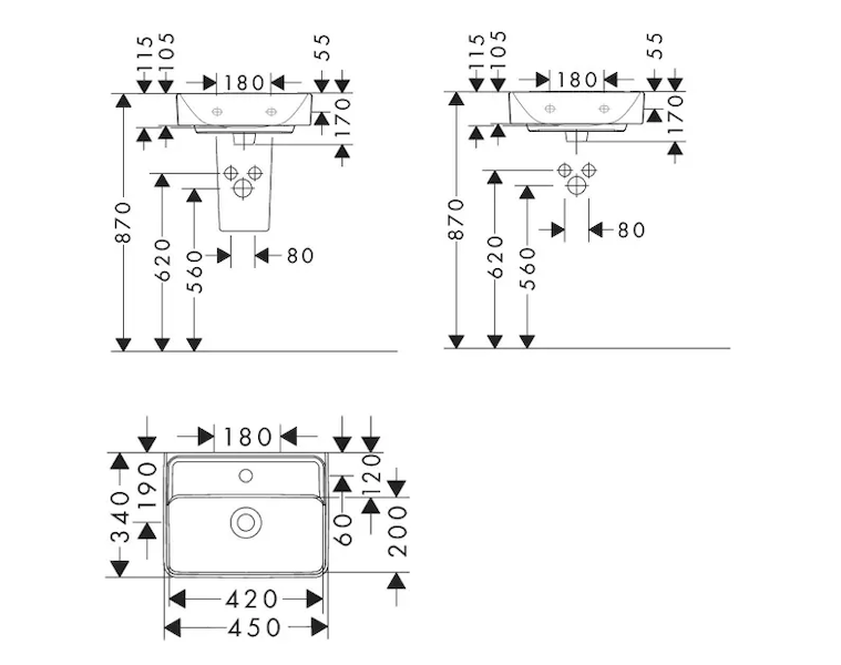 Umývátko 450/340 s otvorem pro baterii, bez přepadu