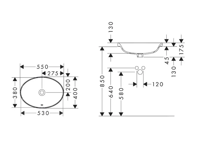 Hansgrohe Xuniva D - Umyvadlo, 55x40 cm, s přepadem, bez otvoru pro baterii, bílá 60156450
