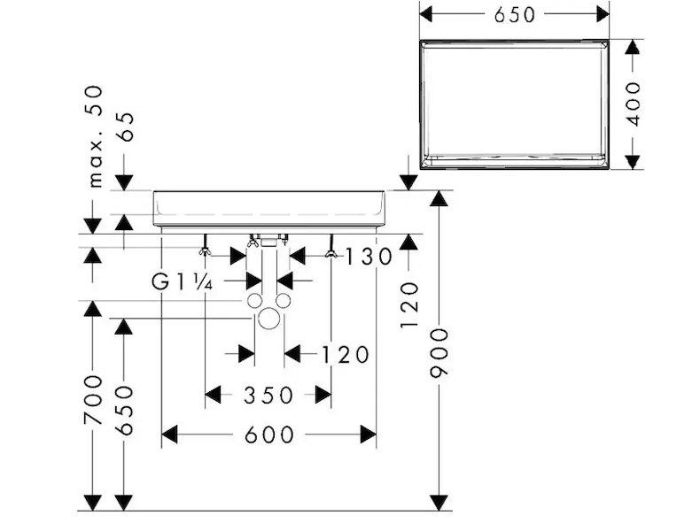 - vnitřní výška umyvadla: 65 mm