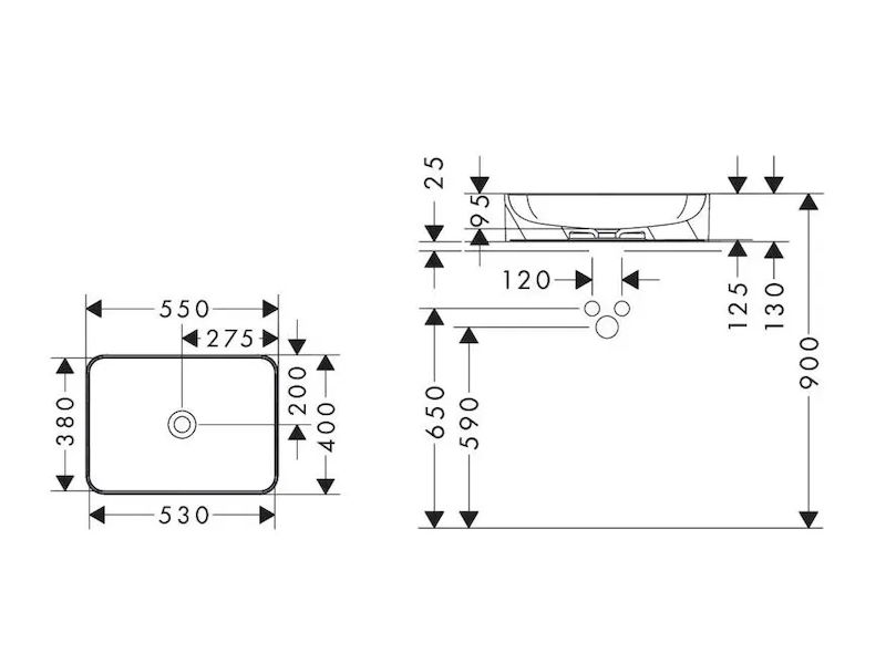 Hansgrohe Xuniva Q - Umyvadlo na desku, 55x40 cm, bez přepadu, bílá 60168450 Obvykle 1-2 měsíce |