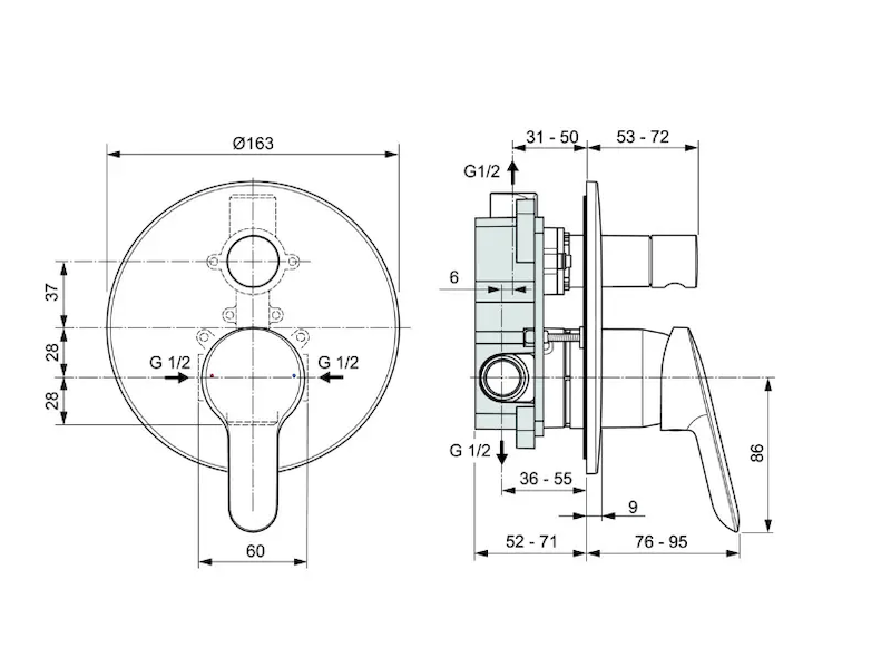 - keramická kartuše 47 mm s omezovačem teplé vody
