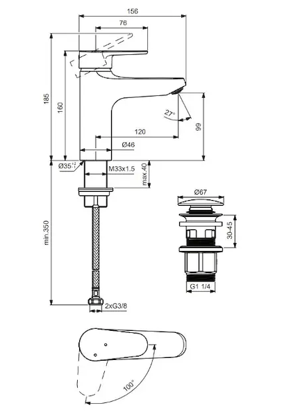 Ideal Standard ALU+ - Umyvadlová baterie s výpustí Click-Clack, BlueStart, hedvábná černá BE130XG Obvykle 1-2 měsíce |
