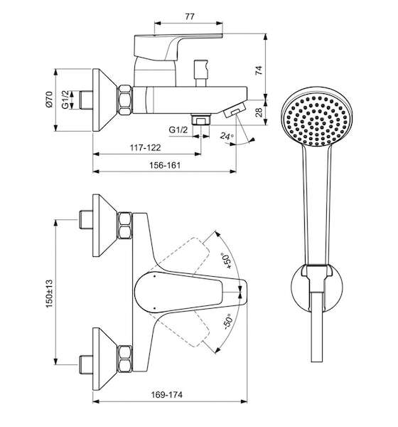 - včetně ruční sprchy s průměrem sprchové hlavice 80 mm