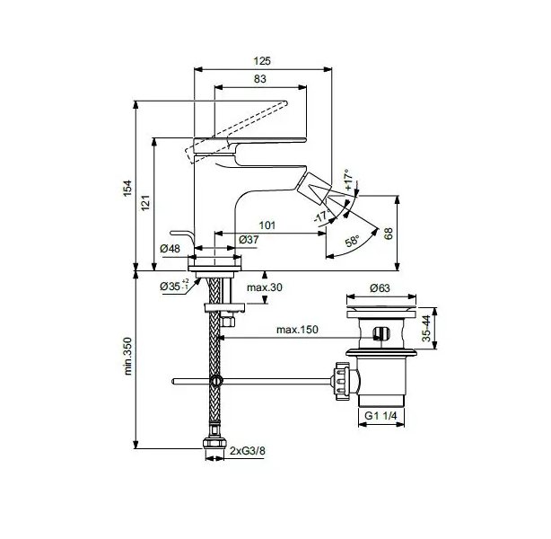 Páková bidetová baterie s výpustí