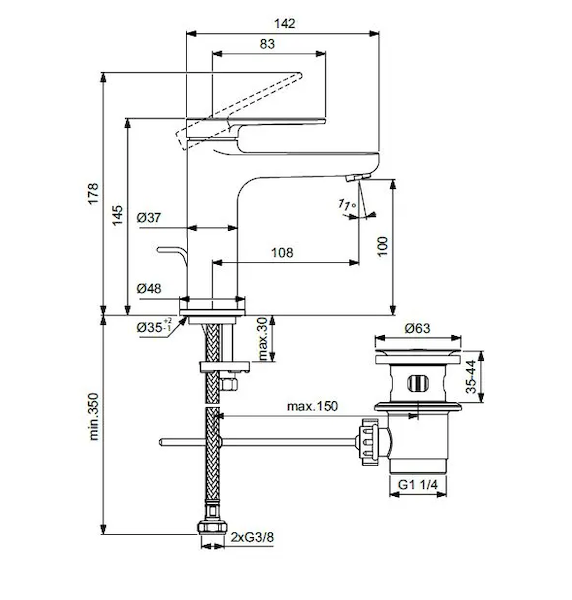 Ideal Standard Cerafine Nuovo - Umyvadlová baterie s výpustí, hedvábná černá BD908XG Skladem u dodavatele 2 ks |