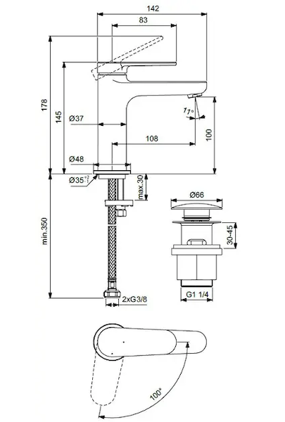 Páková umyvadlová baterie H100 BlueStart