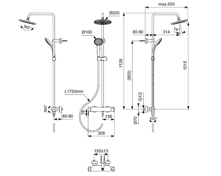 Ideal Standard Cerafine O - Sprchový set s baterií, průměr 20 cm, 1 proud, černá BC750XG Skladem u dodavatele > 10 ks |