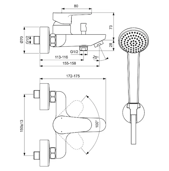 - ruční sprcha s jedním druhem proudu