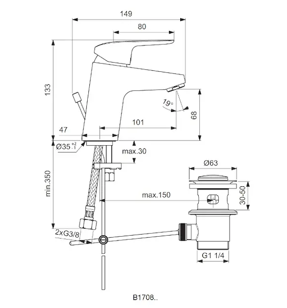 Ideal Standard CeraFlex - Umyvadlová baterie s výpustí, BlueStart, chrom B1711AA