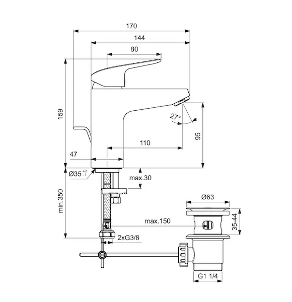 Ideal Standard CeraFlex - Umyvadlová baterie s výpustí, chrom B1712AA