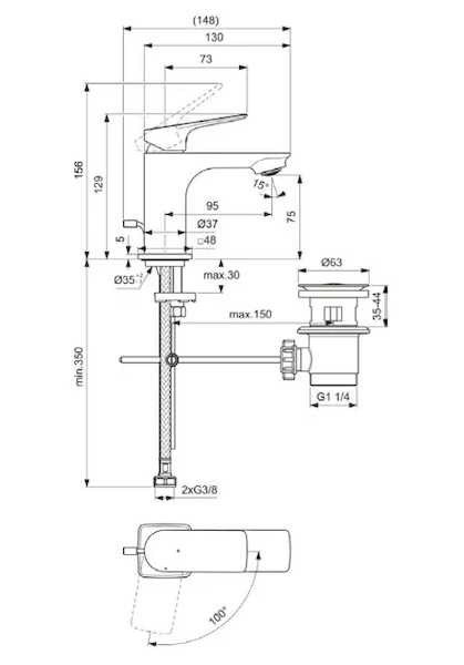 - délka výtoku: 95 mm