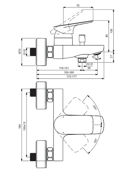Ideal Standard Ceralife C - Vanová baterie, chrom BE067AA Skladem u dodavatele 2 ks |