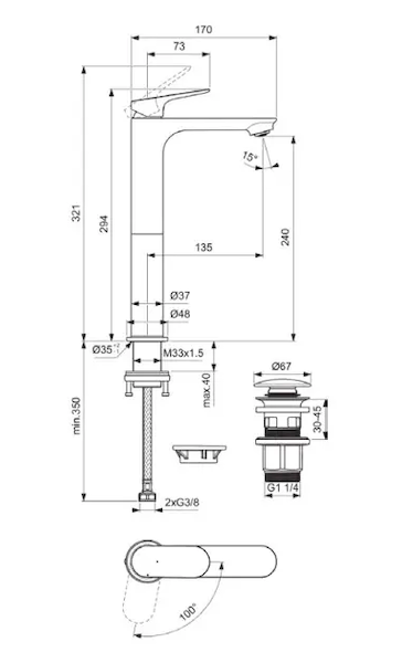 Ideal Standard Ceralife O - Umyvadlová baterie s výpustí Click-Clack, BlueStart, chrom BE013AA Skladem u dodavatele 2 ks |