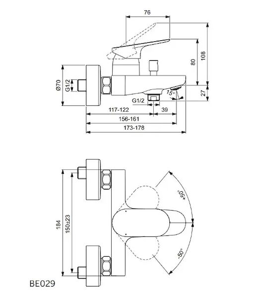 Nástěnná vanová baterie