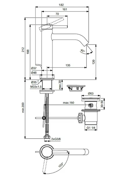 Ideal Standard Ceraline Nuovo - Umyvadlová baterie s výpustí, BlueStart, hedvábná černá BD761XG