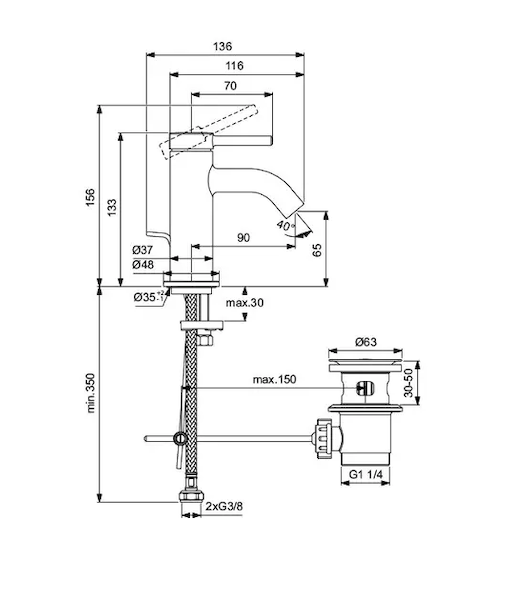 Ideal Standard Ceraline Nuovo - Umyvadlová baterie s výpustí, chrom BD845AA