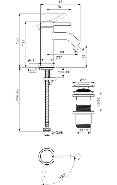 - délka výtoku: 90 mm
