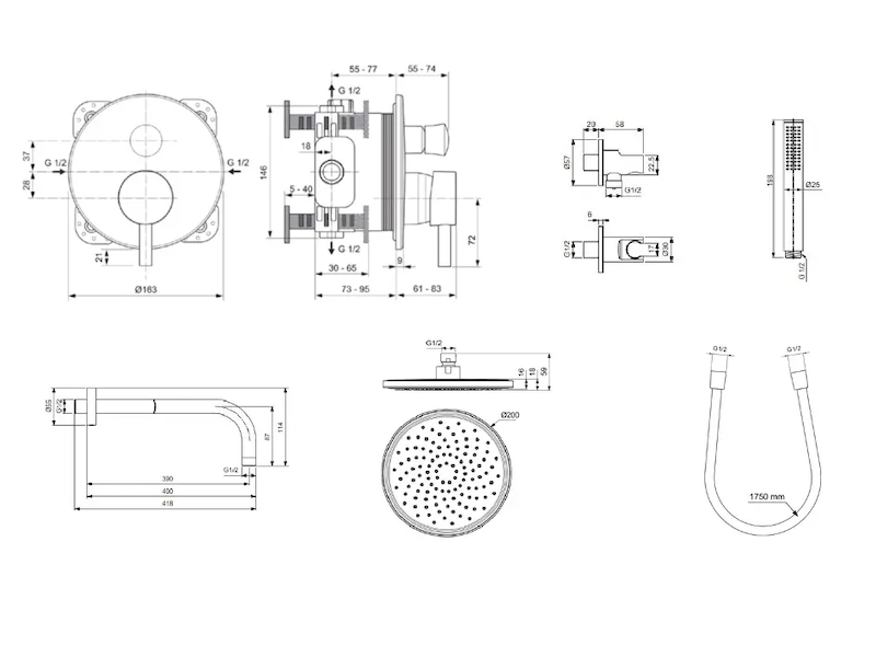 Ideal Standard CeraLine - Sprchový set s baterií pod omítku, s tělesem, průměr 20 cm, matná černá BD193XG Skladem u dodavatele 3 ks |