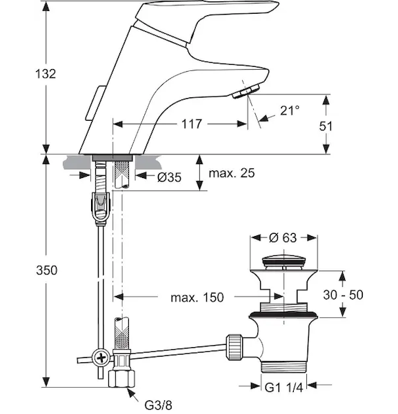Ideal Standard CeraMix Blue - Umyvadlová baterie Piccolo s výpustí, chrom A5651AA