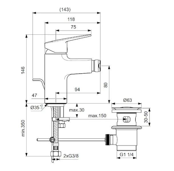 Ideal Standard CeraPlan - Bidetová baterie s výpustí, chrom BD248AA