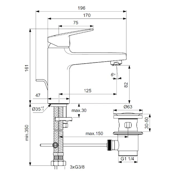Ideal Standard CeraPlan - Umyvadlová baterie Grande s výpustí, chrom BD230AA