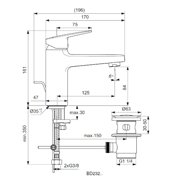 Ideal Standard CeraPlan - Umyvadlová baterie Grande s výpustí, chrom BD232AA