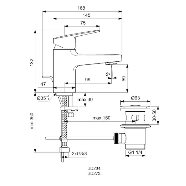 Ideal Standard CeraPlan - Umyvadlová baterie Piccolo s výpustí, chrom BD273AA