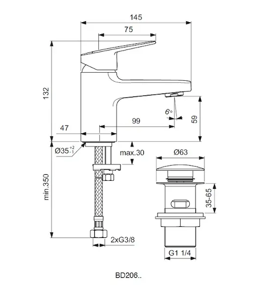 Ideal Standard CeraPlan - Umyvadlová baterie Piccolo s výpustí Click-Clack, chrom BD206AA