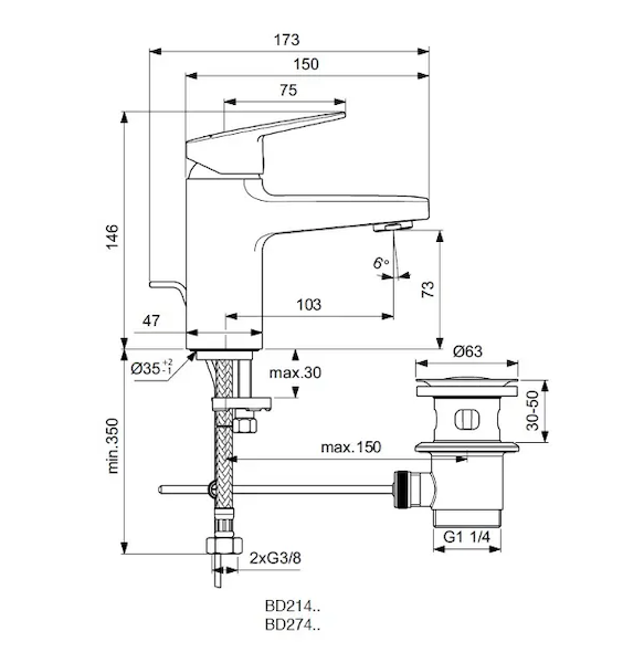 Ideal Standard CeraPlan - Umyvadlová baterie s výpustí, chrom BD274AA