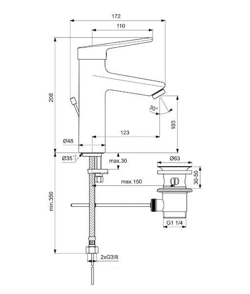 Ideal Standard Ceraplus II - Umyvadlová baterie Grande s výpustí, chrom BC099AA