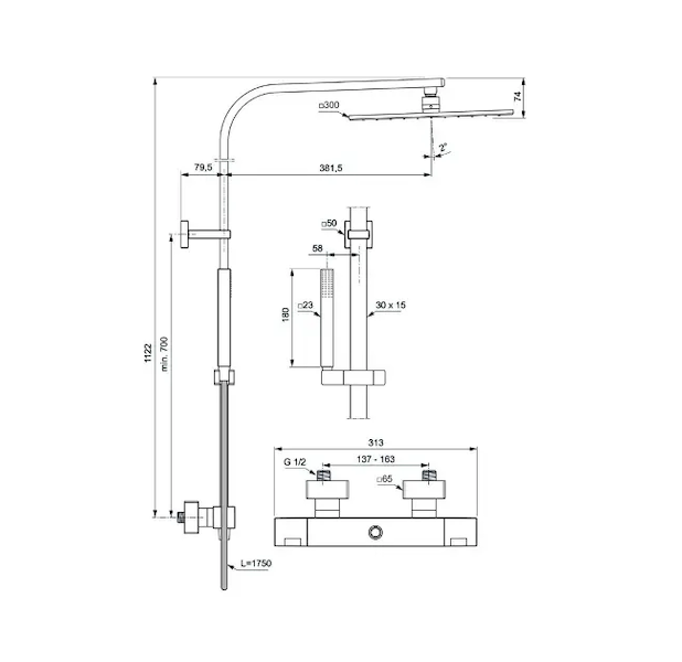 Ideal Standard Ceratherm C100 - Sprchový set s termostatem, 30x30 cm, chrom A7542AA